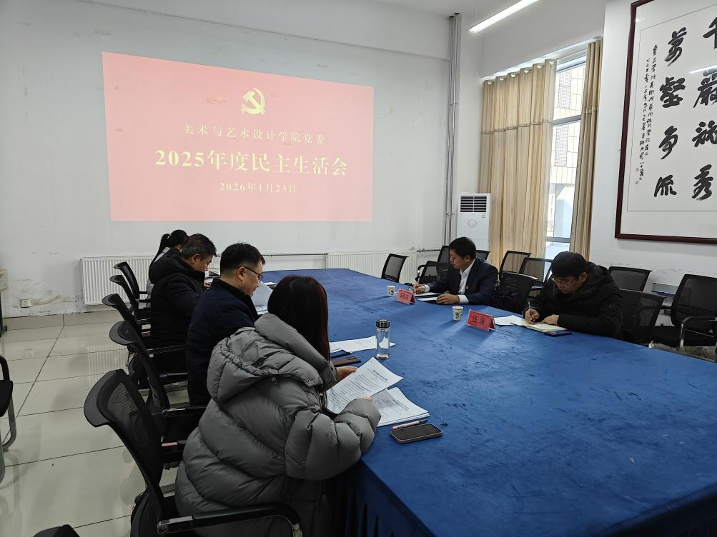 1月23日上午,美术与艺术设计学院党委班子在博雅楼A213会议室召开2025年度民主生活会。校党委委员、副校长李目海到会指导,校党委宣传部副部长汪涛陪同。学院党委书记王剑主持会议,党委班子成员参加会议,教师代表列席会议。会上,王剑通报了学院党委深入贯彻中央八项规定精神学习教育整改情况、2024年度民主生活会、有关专题民主生活会查摆问题整改情况以及本年度民主生活会征求意见情况,并代表班子作对照检查。随后,党委班...