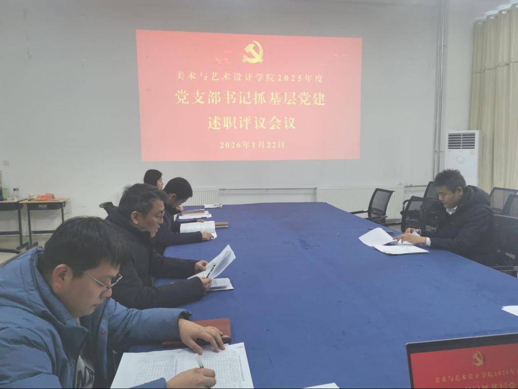 1月22日下午,美术与艺术设计学院2025年度党支部书记全面从严治党述责述廉评议会议在博雅楼A213会议室召开,学院党委书记王剑主持会议并点...