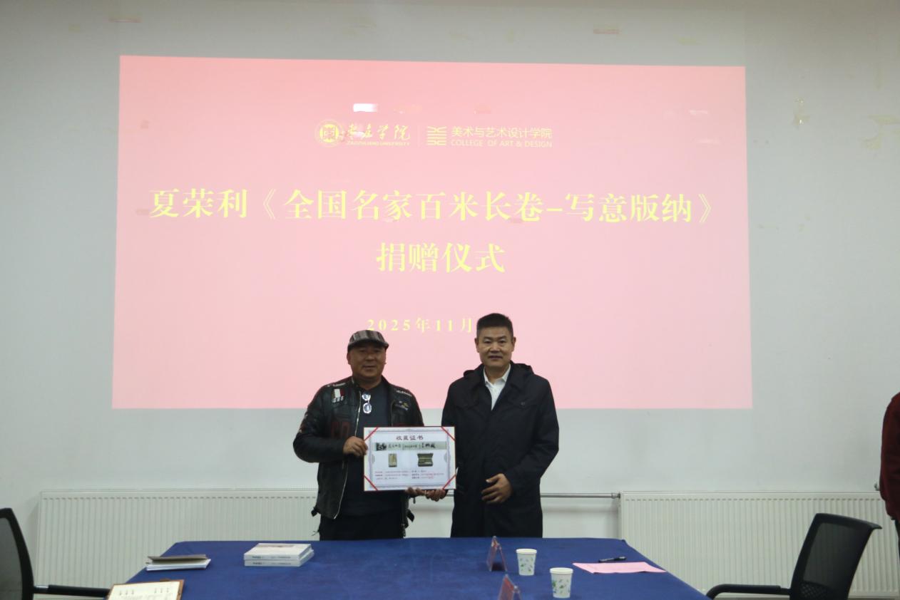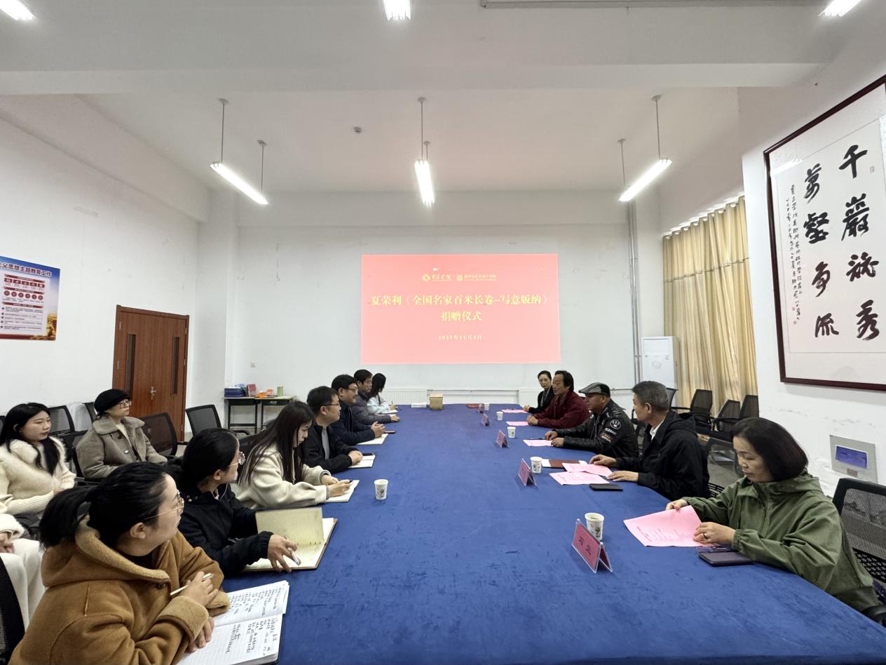 11月3日,美术与艺术设计学院在博雅楼A213举行夏荣利《全国名家百米长卷—写意版纳》(复制件)捐赠仪式