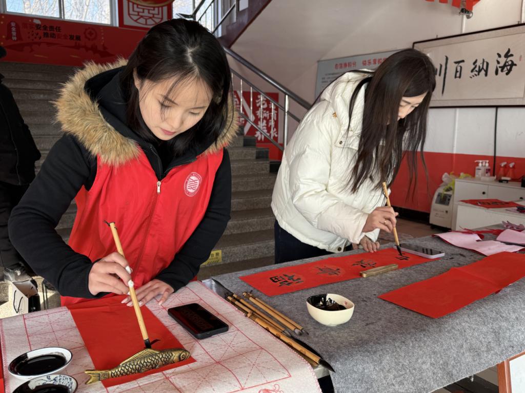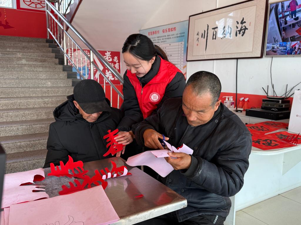 此次服务对象为敬老院23位孤寡老人。活动现场,墨香四溢、红纸翻飞。志愿者们以笔为媒,将马年“龙马精神”的吉祥寓意融入创作,写下对仗工整的春联,绘制饱满的福字。创作间隙,志愿者们以通俗易懂的语言,为老人们细致讲解楹联的平仄对仗、押韵规则等格律知识与剪纸的历史渊源、地域特色与吉祥纹样的寓意。体验环节,志愿者们手把手教老人们折红纸、定轮廓、下剪刀,现场欢声笑语不断。志愿者们还精心准备了牛奶、鸡蛋等慰问品,将创作的春联、福字和剪纸作品亲自送到老人手中。志愿者们与老人促膝谈心,关切询问饮食起居和身体状况,主动帮行动不便的老人擦拭门窗、张贴春联和窗花,现场的每一个角落都染上了新春的喜庆色彩。