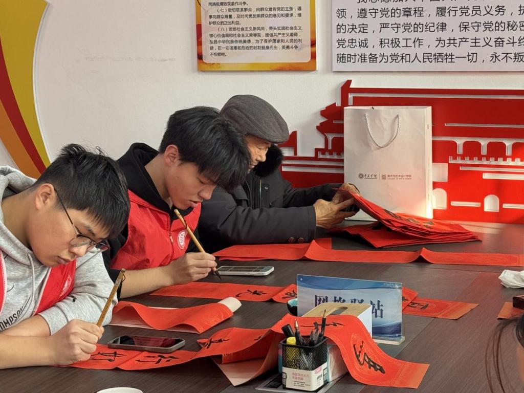 此次活动为30名空巢老人送去节日的问候与暖心的陪伴。活动中,志愿者们发挥专业特长,设立“书法艺术送温暖”摊位,不仅邀请书法专业志愿者现场进行书法技能教学,而且,根据各自需求和喜好创作春联和福字。一幅幅吉祥的春联、一张张饱满的“福”字,满载温情与祝福,传递到老人手中。志愿者们分组上门,为行动不便的老人贴春联、整家务,温情陪伴,帮助腿脚不便老人购买生活用品等实际服务,让志愿服务的温暖真正融入乡村老人生活。