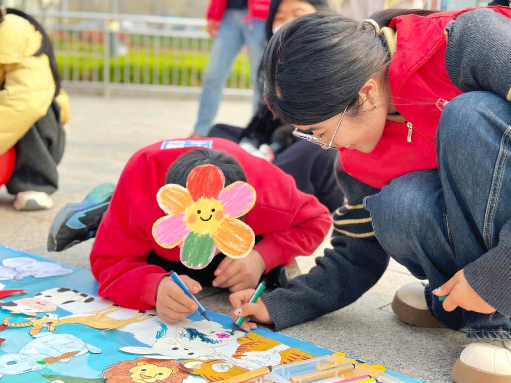 为迎接第19个世界孤独症关注日,弘扬美育精神与志愿服务精神,4月1日,美术与艺术设计学院组织志愿者走进枣庄市残疾人综合康复中心,开展“守护童星,绘爱于心”百米长卷共创美育活动,以艺术为纽带,为30位孤独症儿童搭建情感表达的桥梁,用温情与画笔传递关爱与温暖。
