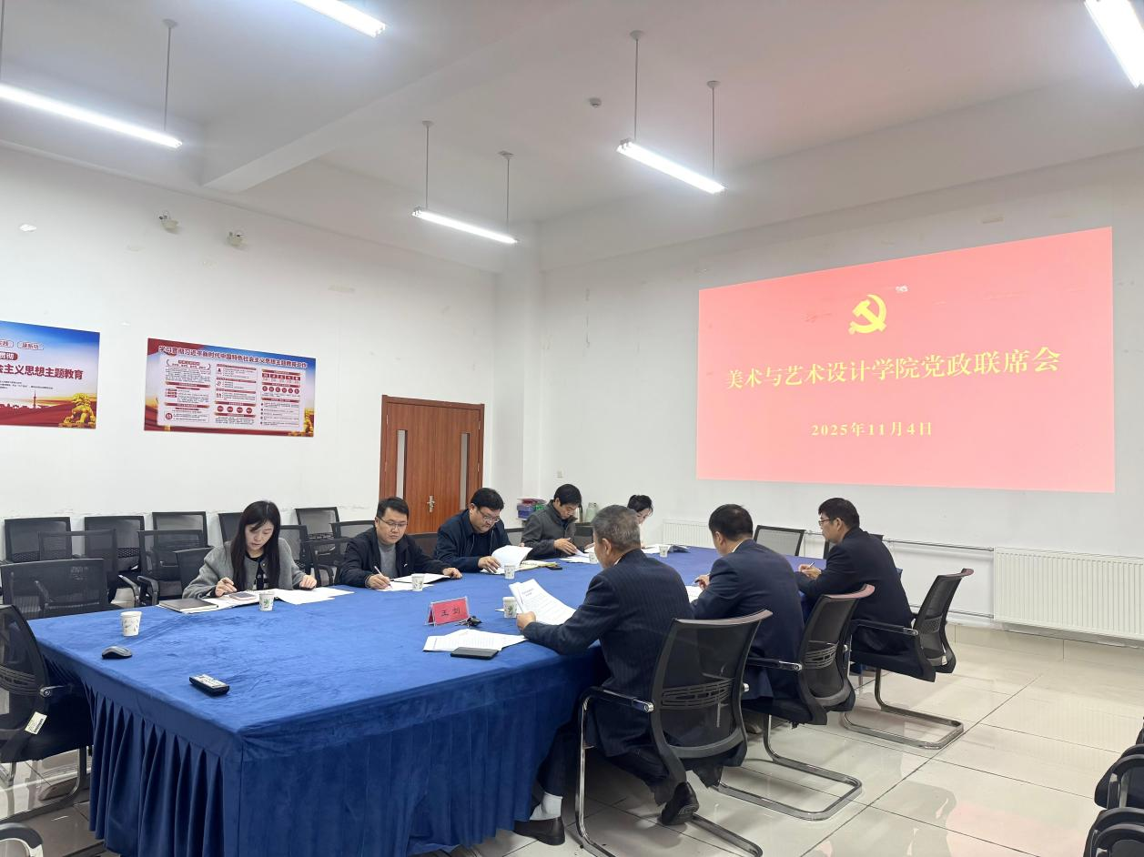11月4日,美术与艺术设计学院在博雅楼A213进行学院党委理论学习中心组集体学习、召开党委会和党政联席会。校党委委员、副校长李目海列席旁听并进行指导,宣传部副部长汪涛陪同,学院党委、党政联席会全体成员参会,学院党委书记王剑主持会议。